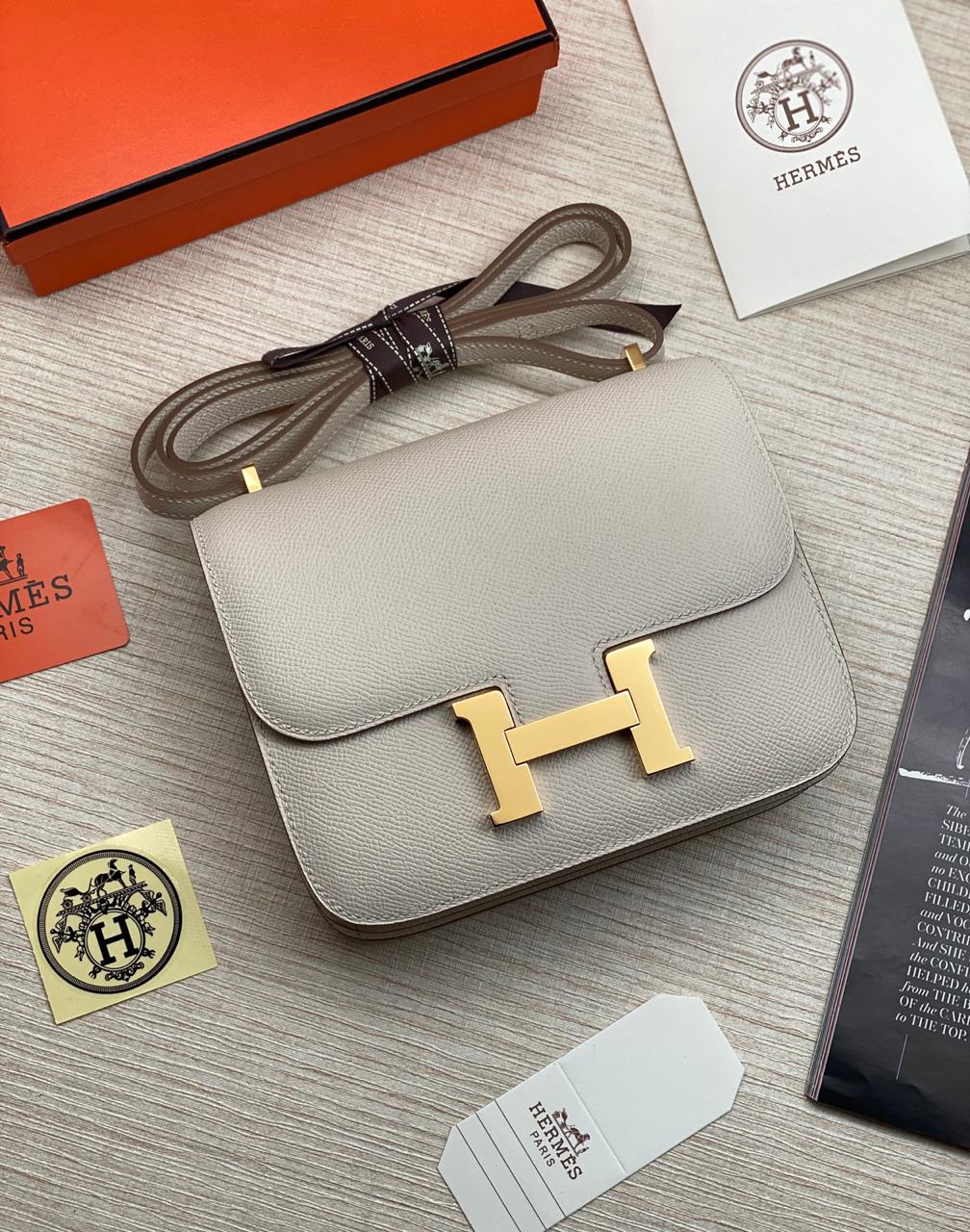 HERMES сумка Constance кожа Эпсом 18 см белая фурнитура золото