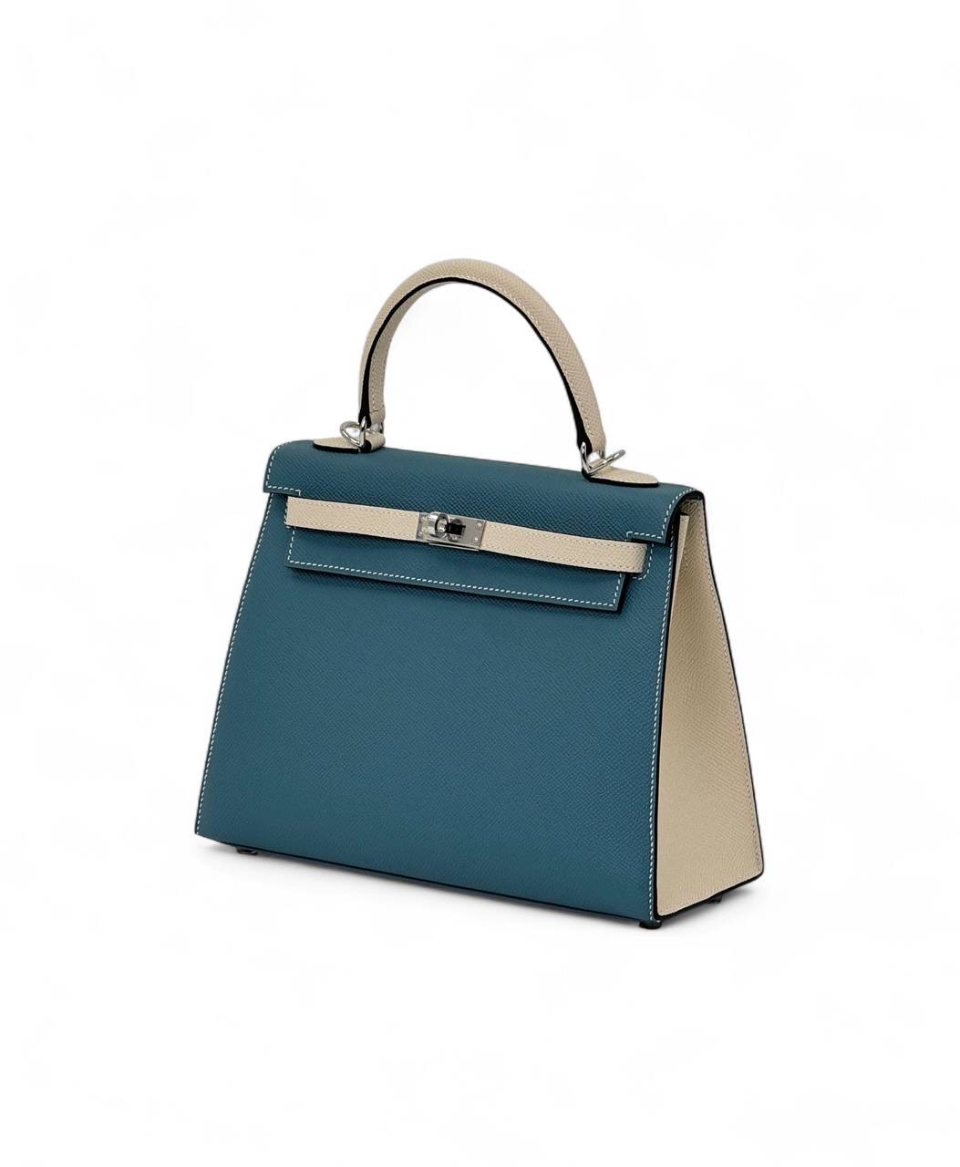 HERMES сумка Kelly кожа Эпсом 25 см сине-молочная серебро