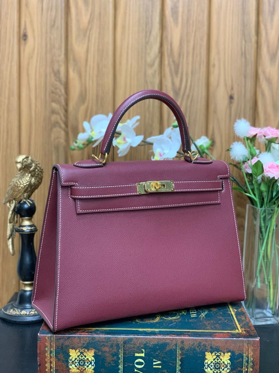 HERMES сумка Kelly кожа Эпсом 32 см бордовая фурнитура золото