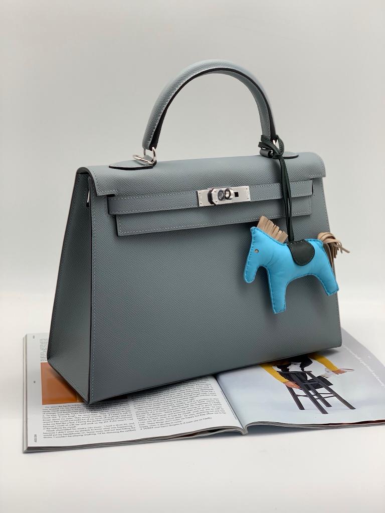 HERMES сумка Kelly кожа Эпсом 32 см голубая фурнитура серебро