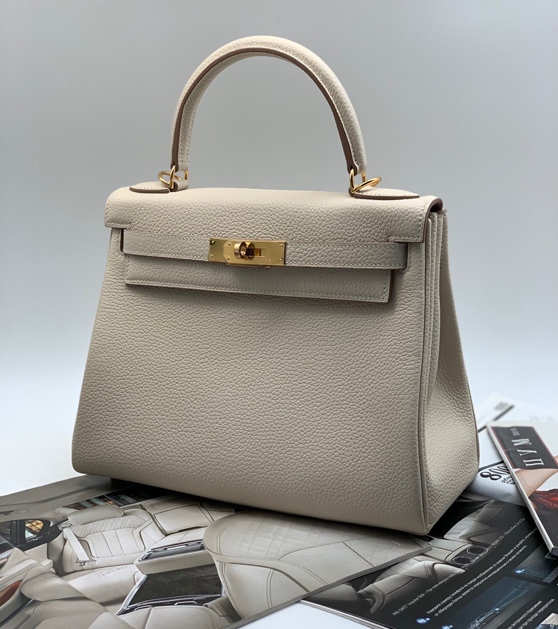 HERMES сумка Kelly кожа того 28 см кремовая фурнитура золото