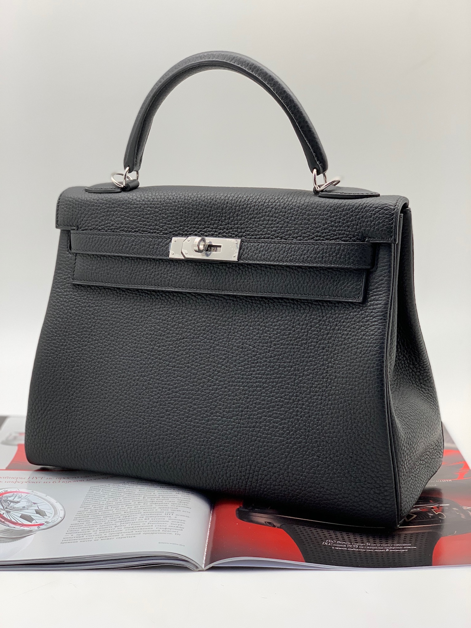 HERMES сумка Kelly кожа Того 32 см черная фурнитура серебро