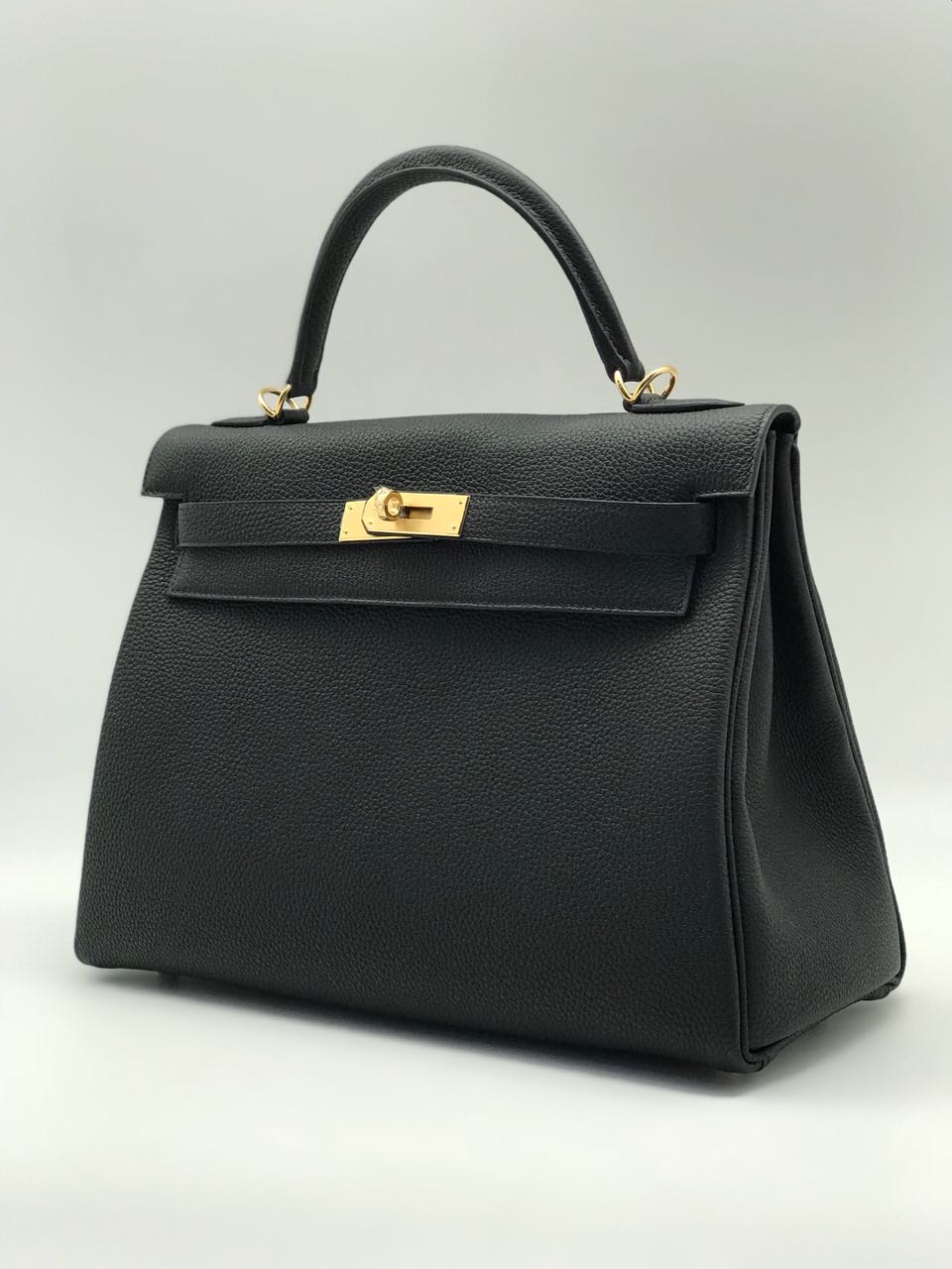 HERMES сумка Kelly кожа Того 32 см черная фурнитура золото