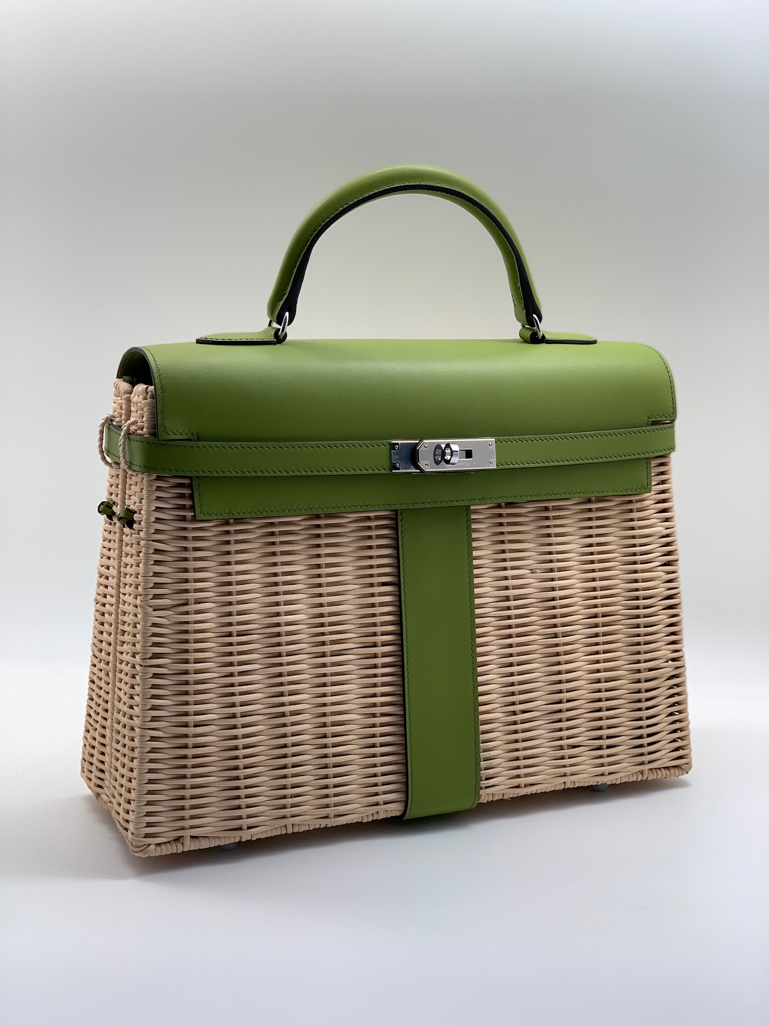 HERMES сумка Kelly Picnik 35 см зеленая фурнитура серебро