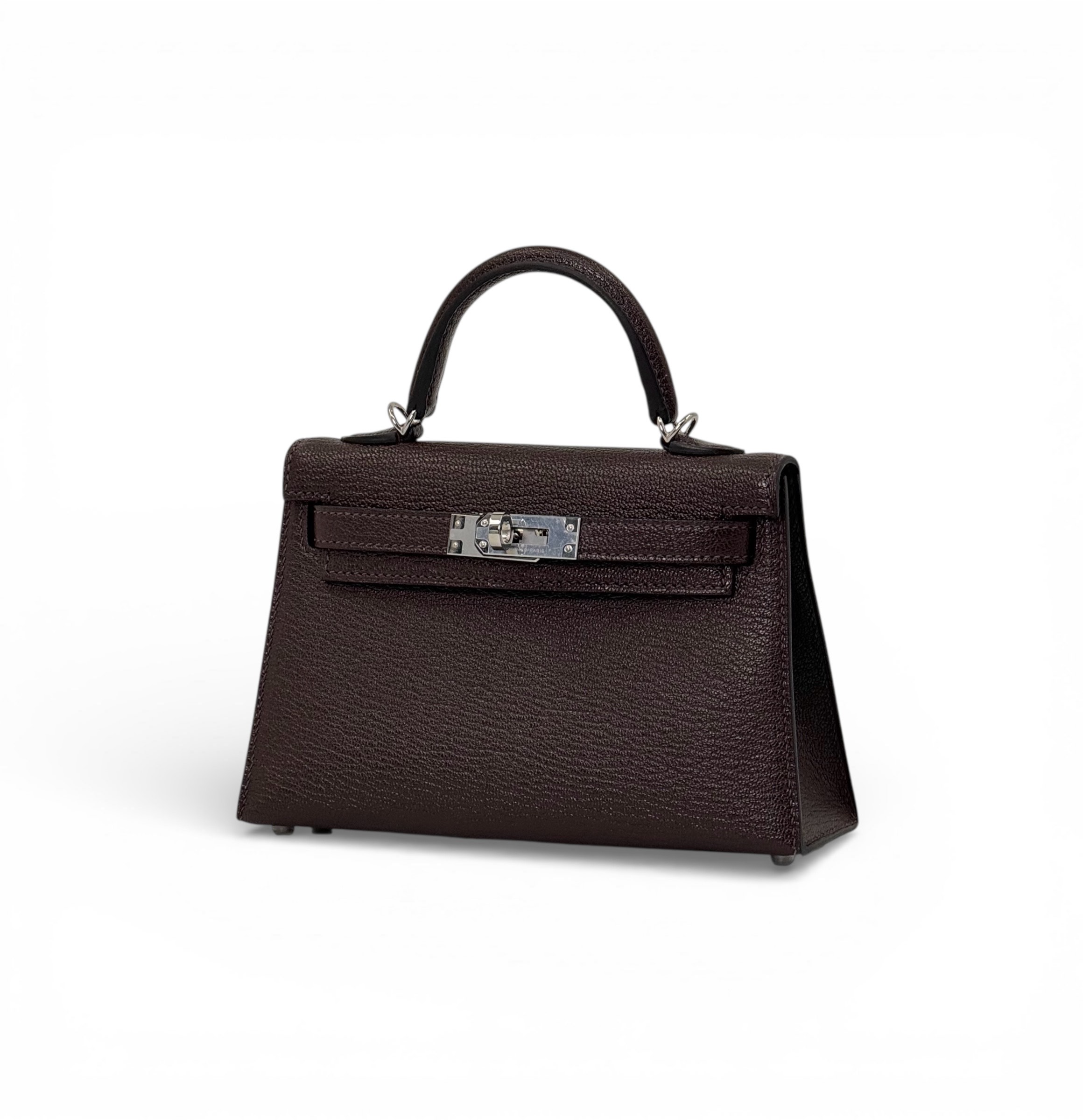 HERMES сумка MINI KELLY 19 см кожа Шевре бордовая серебро
