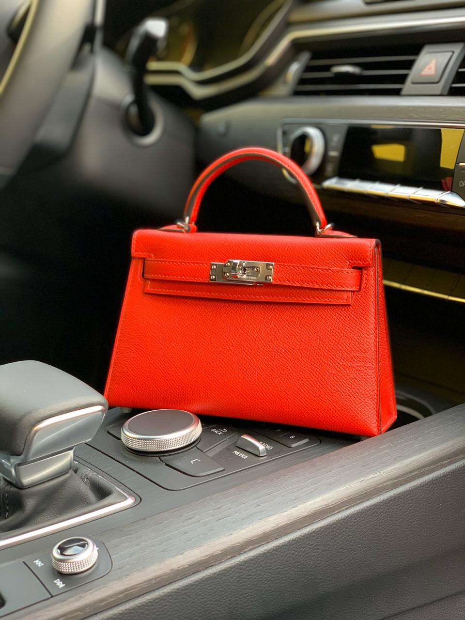 HERMES сумка Mini Kelly кожа Эпсом 19 см красная фурнитура серебро