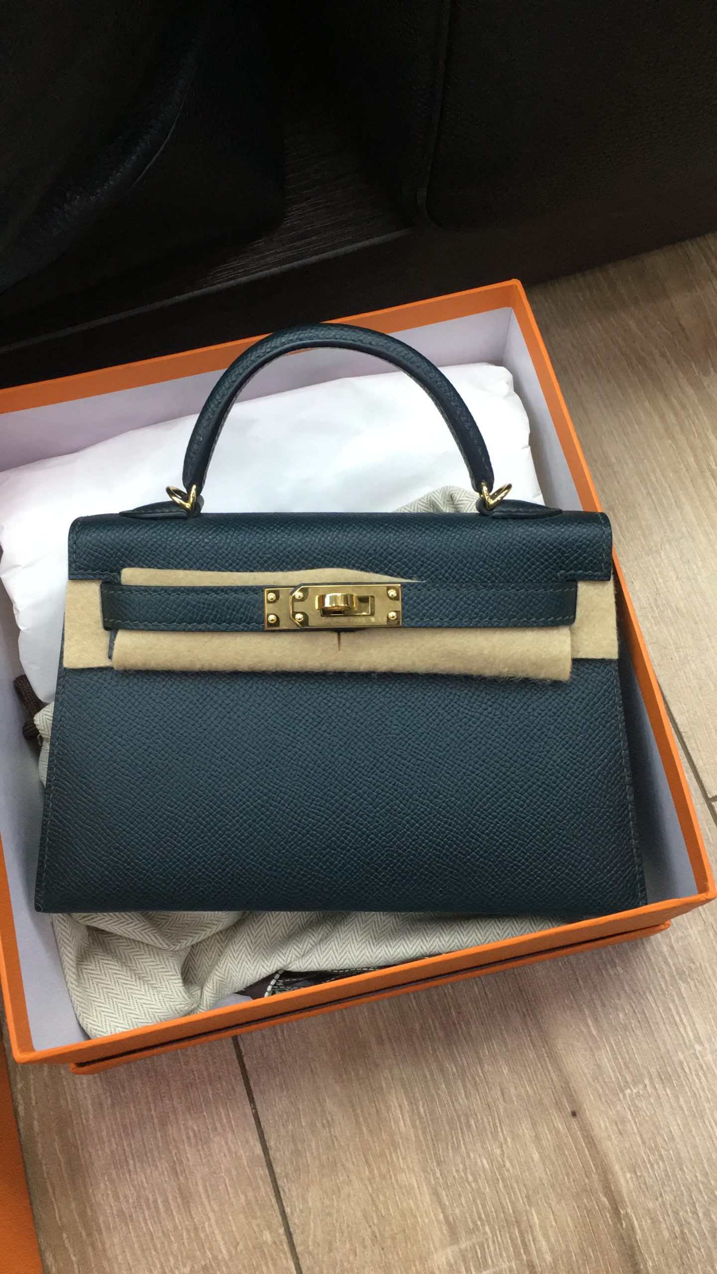 HERMES сумка Mini Kelly кожа Эпсом 19 см темно-зеленая ручная фурнитура золото