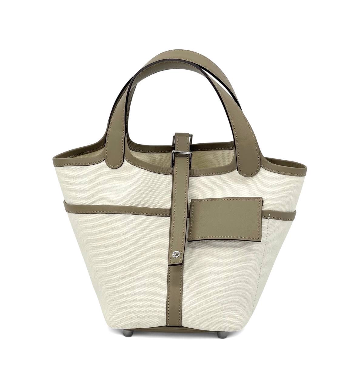 HERMES сумка Picotin карго 18 см молочный текстиль кожа этуп серебро