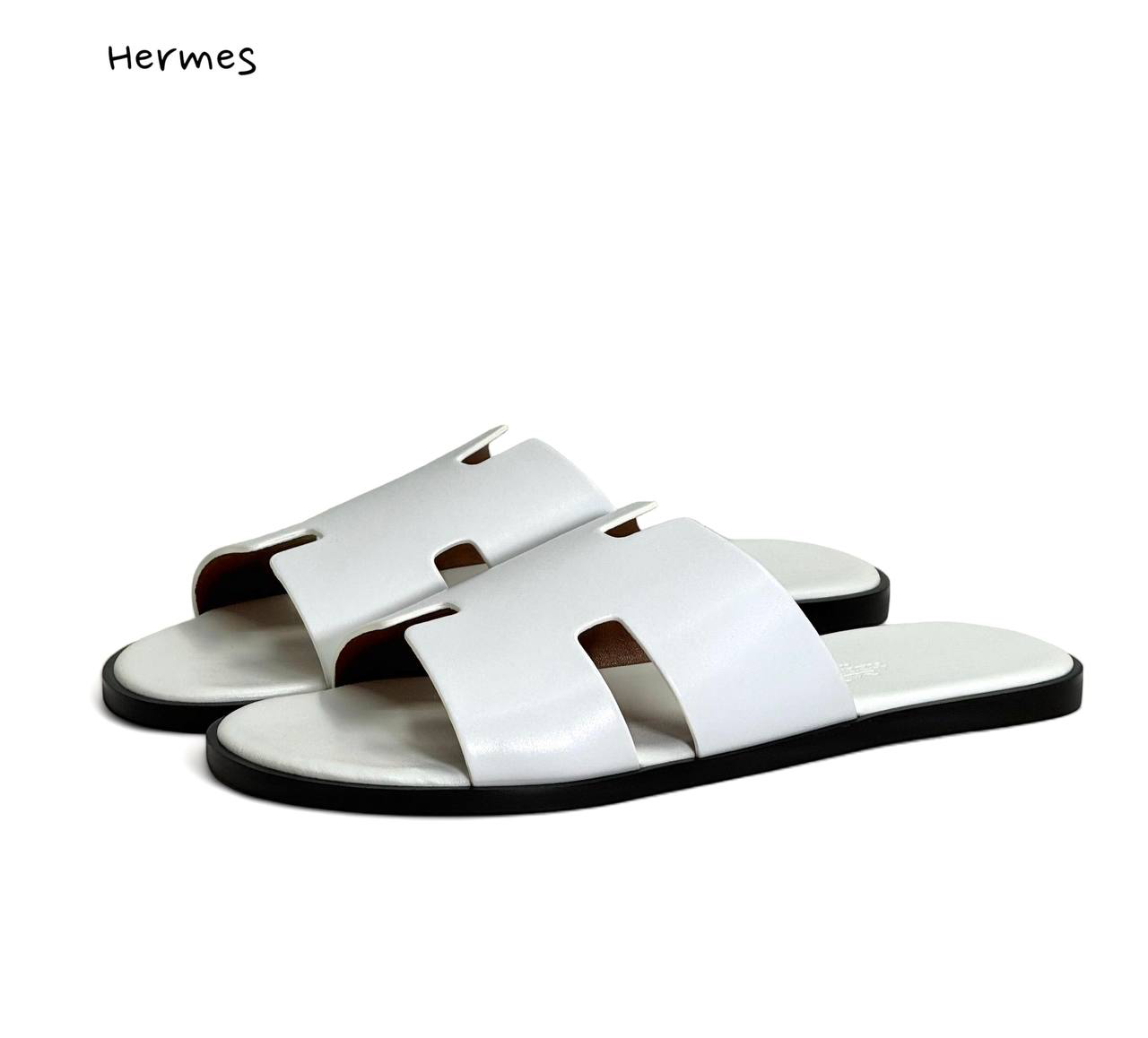 HERMES Тапочки из белой гладкой кожи белая стелька