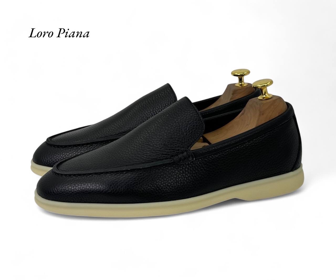 LORO PIANA лоферы низкие кожа черные с белой подошвой