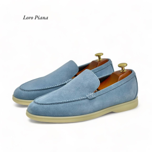 LORO PIANA лоферы высокие замша синие на белой подошве
