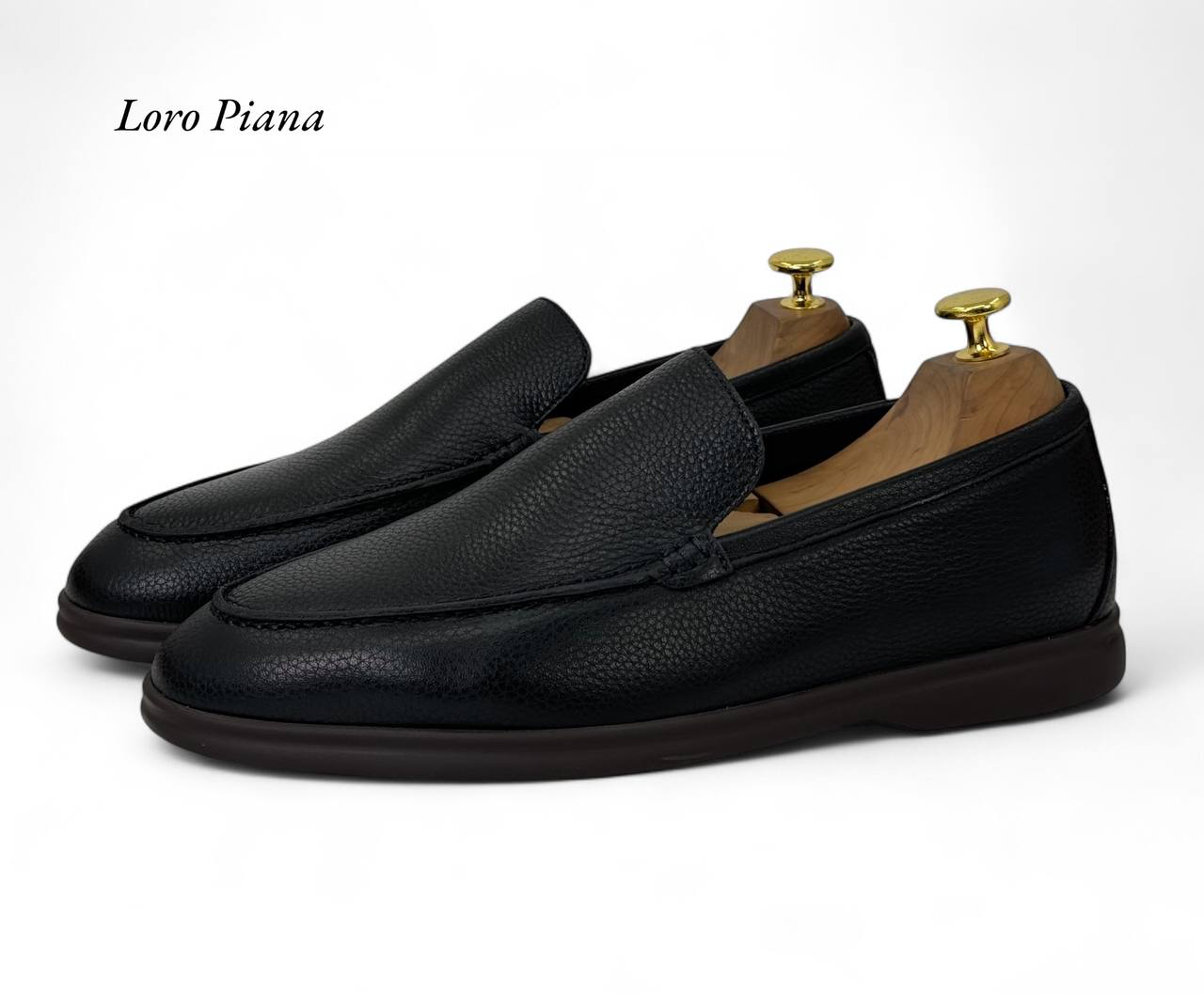 LORO PIANA лоферы низкие кожа черные с темной подошвой