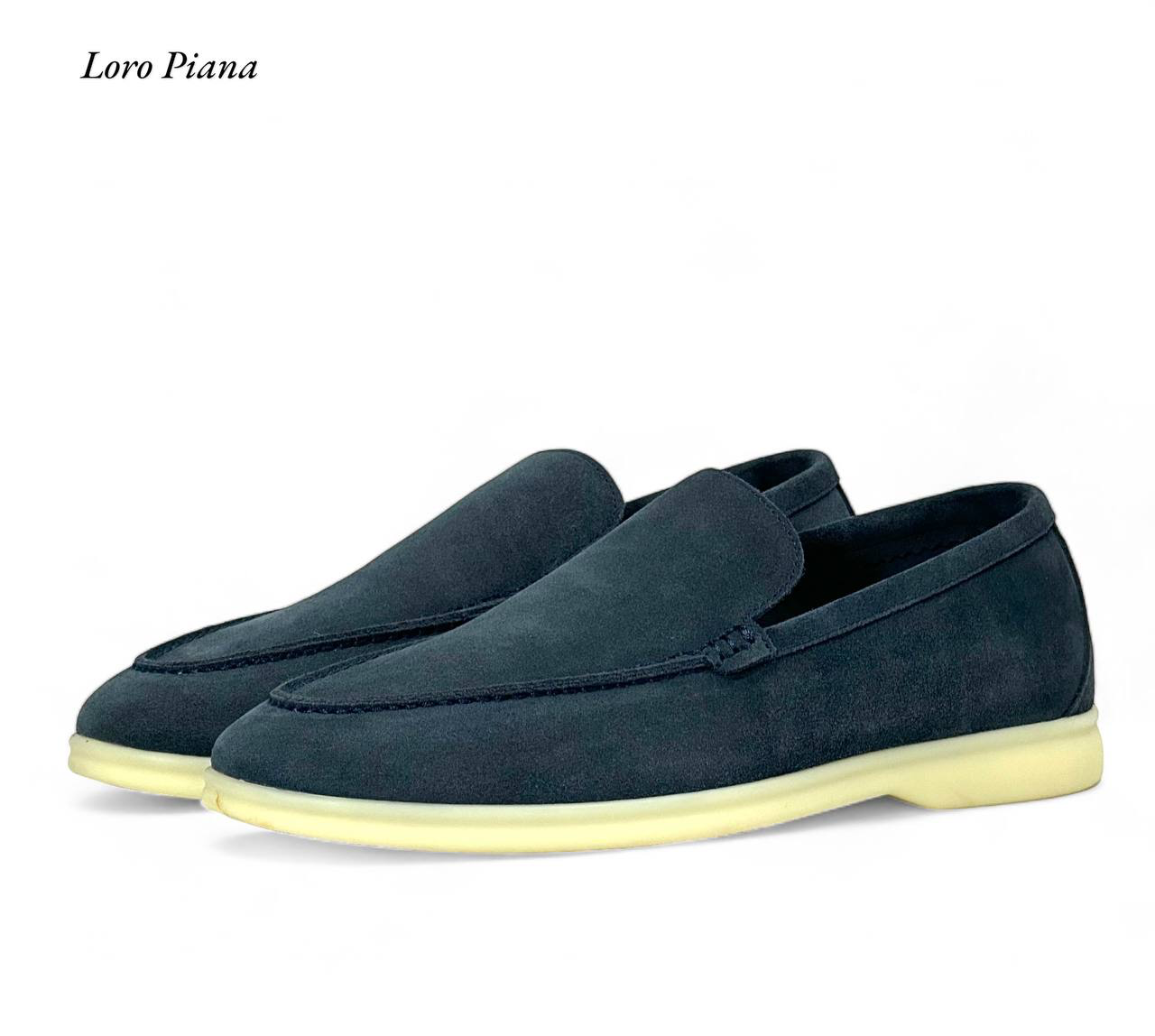 LORO PIANA лоферы темные серо-синие замша на белой подошве