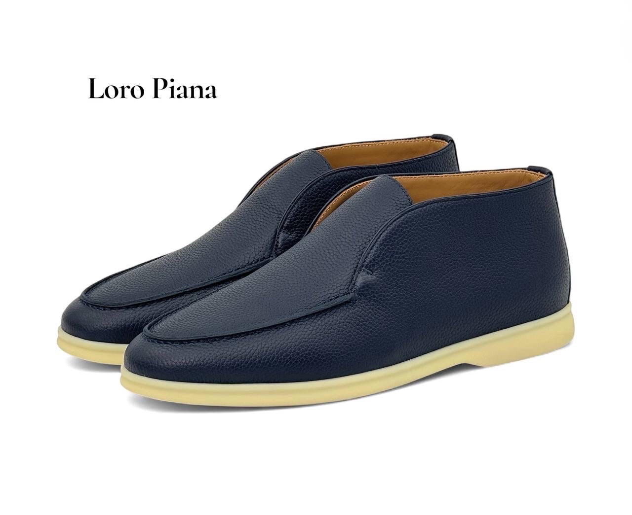 LORO PIANA лоферы высокие кожа синие на белой подошве