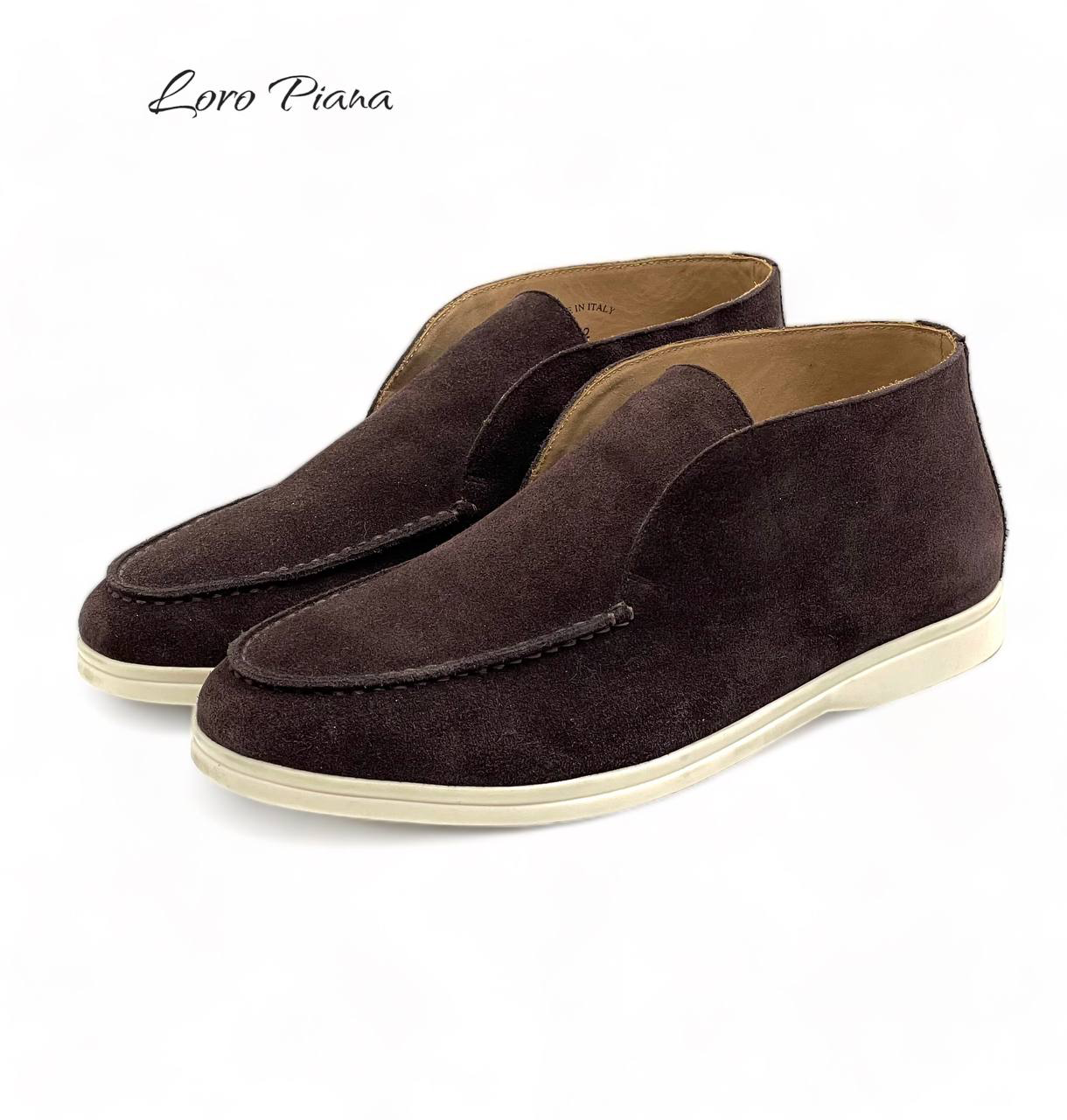 LORO PIANA лоферы высокие замша черно-серые с темной подошвой