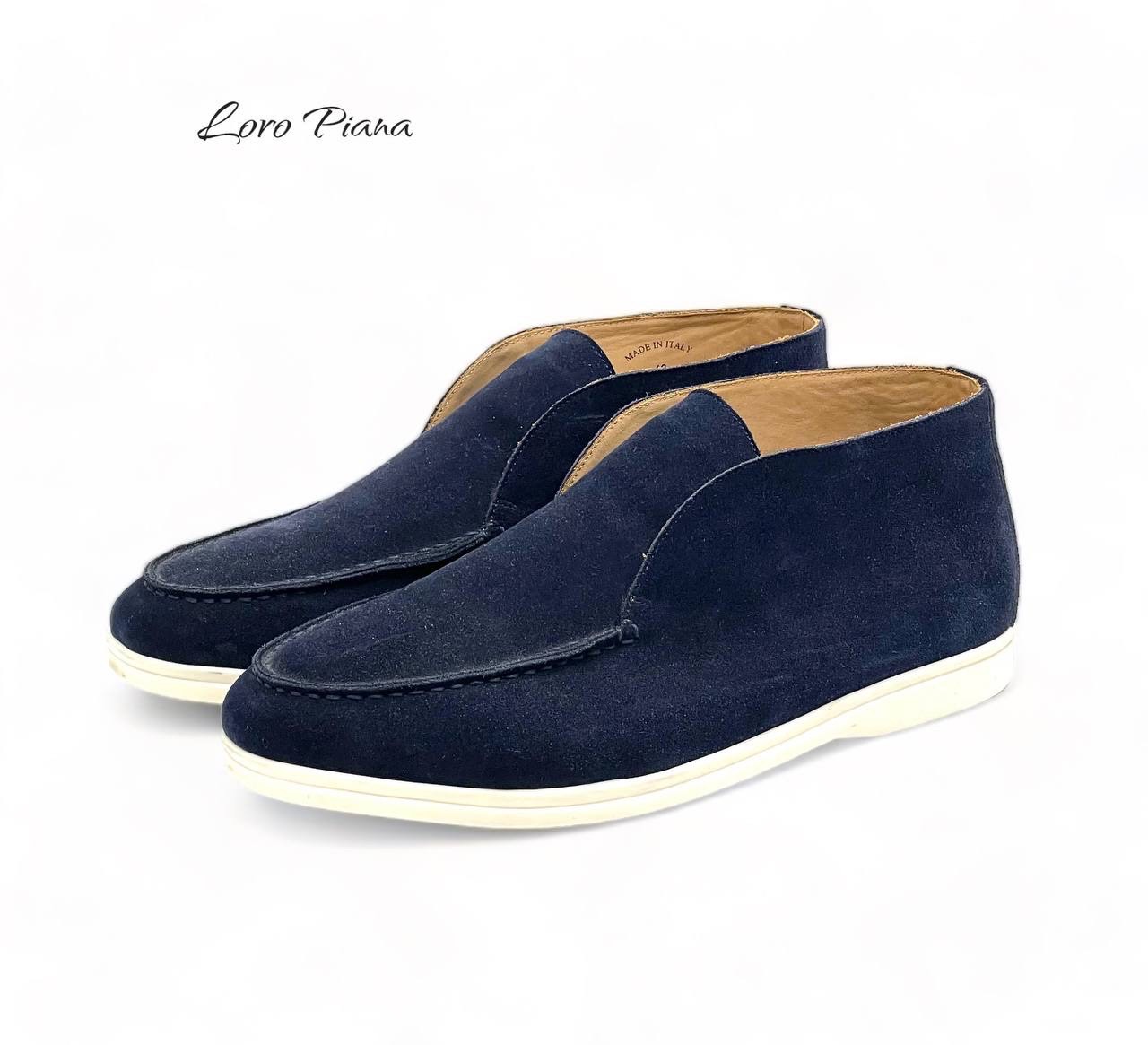 LORO PIANA лоферы высокие замша синие на белой подошве