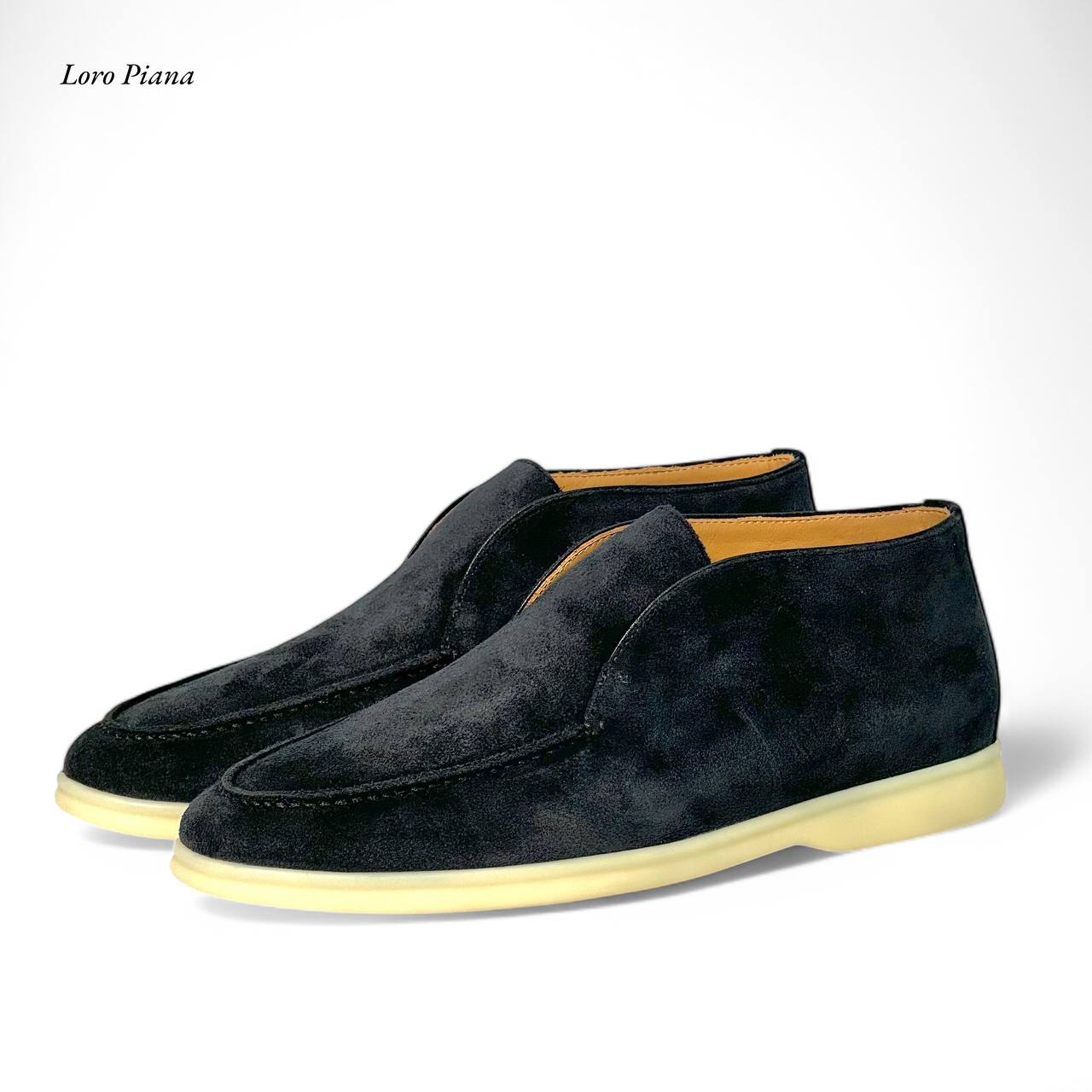 LORO PIANA лоферы высокие замша темно-графитовые на белой подошве