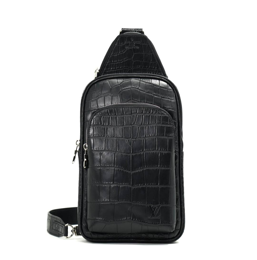 LOUIS VUITTON слинг черная крокодиловая кожа с тисненым логотипом новый с дополнительным карманом