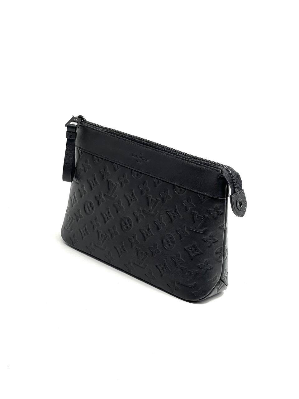 LV борсетка клатч Pochette Voyage Souple из черной кожи с тиснением в монограмму