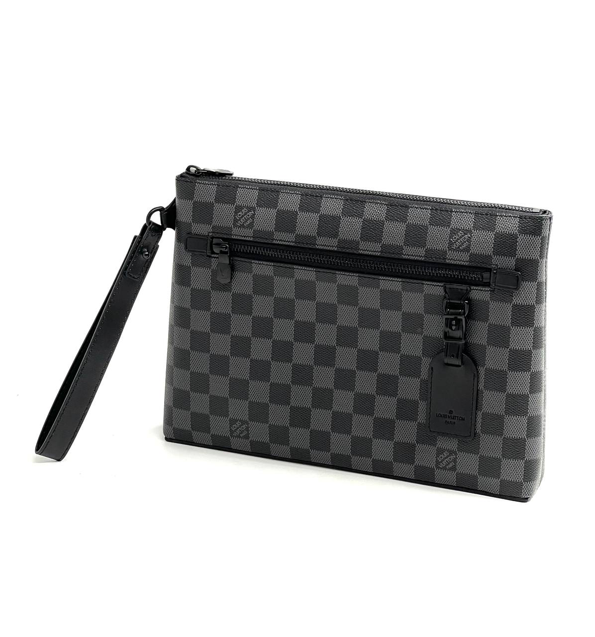 LV борсетка клатч Pochette Voyage Souple из черной кожи с тиснением в монограмму
