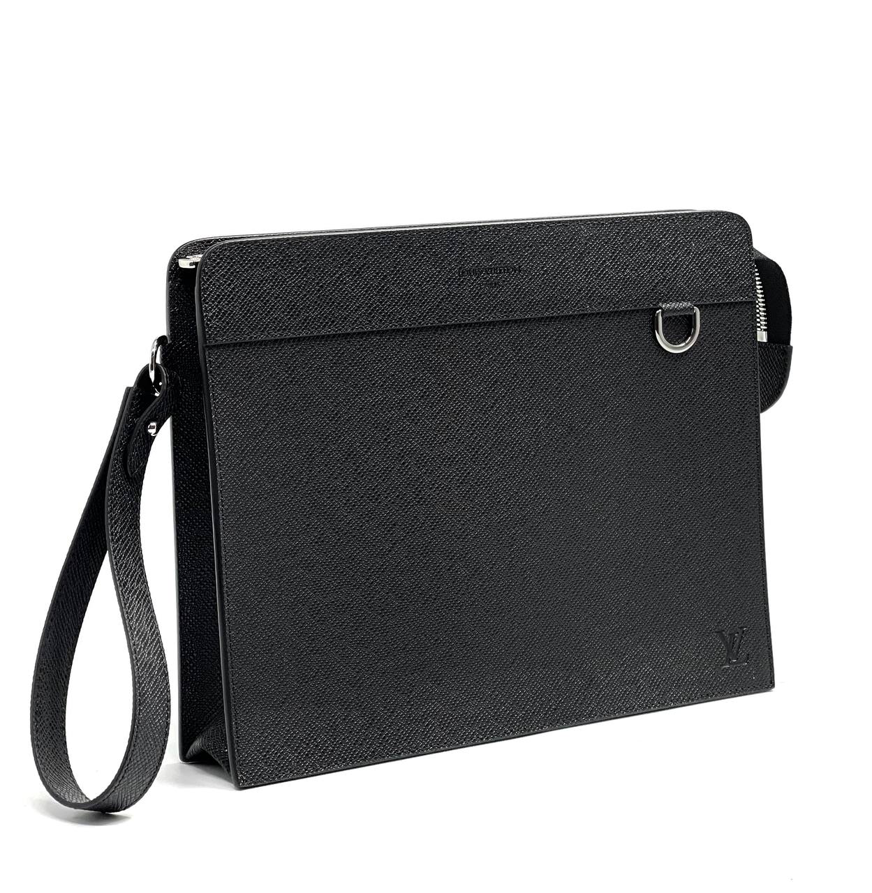 LV борсетка Standing кожа taiga черная с ручкой