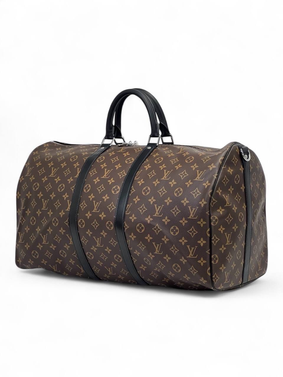 LV дорожная сумка 50 см коричневая монограмма черная кожа