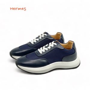HERMES кроссовки черные кожа и замша тисненный логотип сбоку