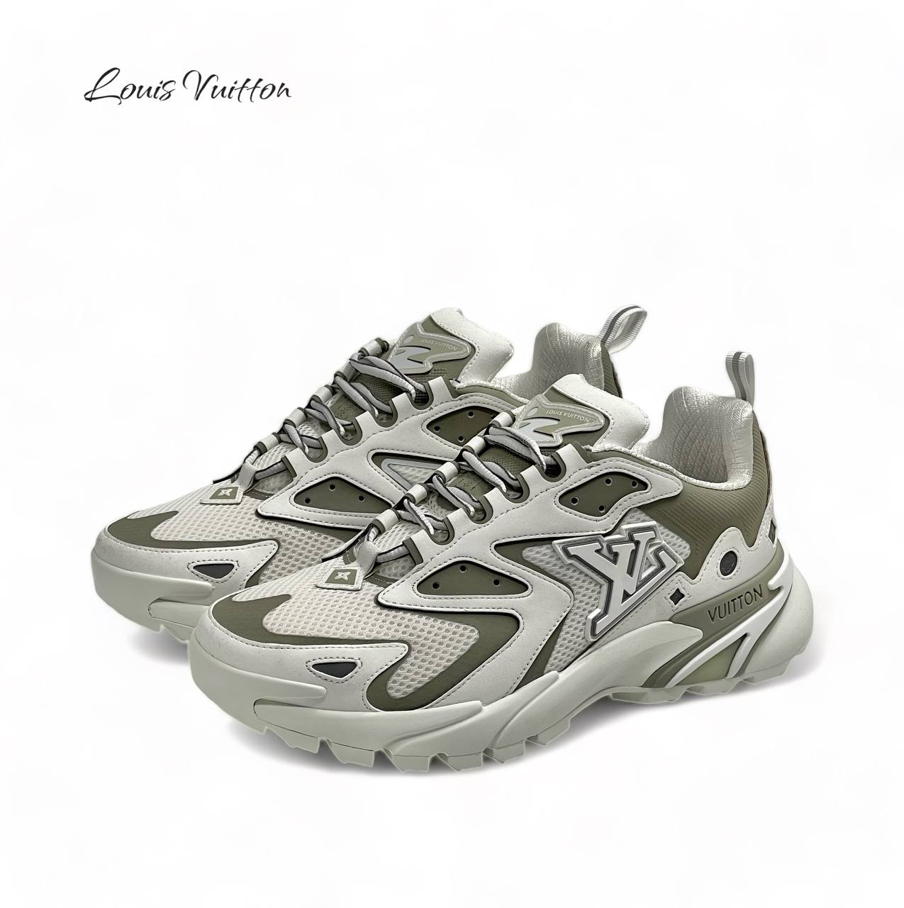 LV кроссовки белые с серыми вставками по бокам белый лого ЛВ