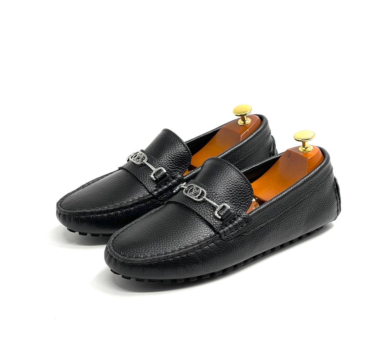 LV лоферы из черной кожи того с металлическим лого на перемычке