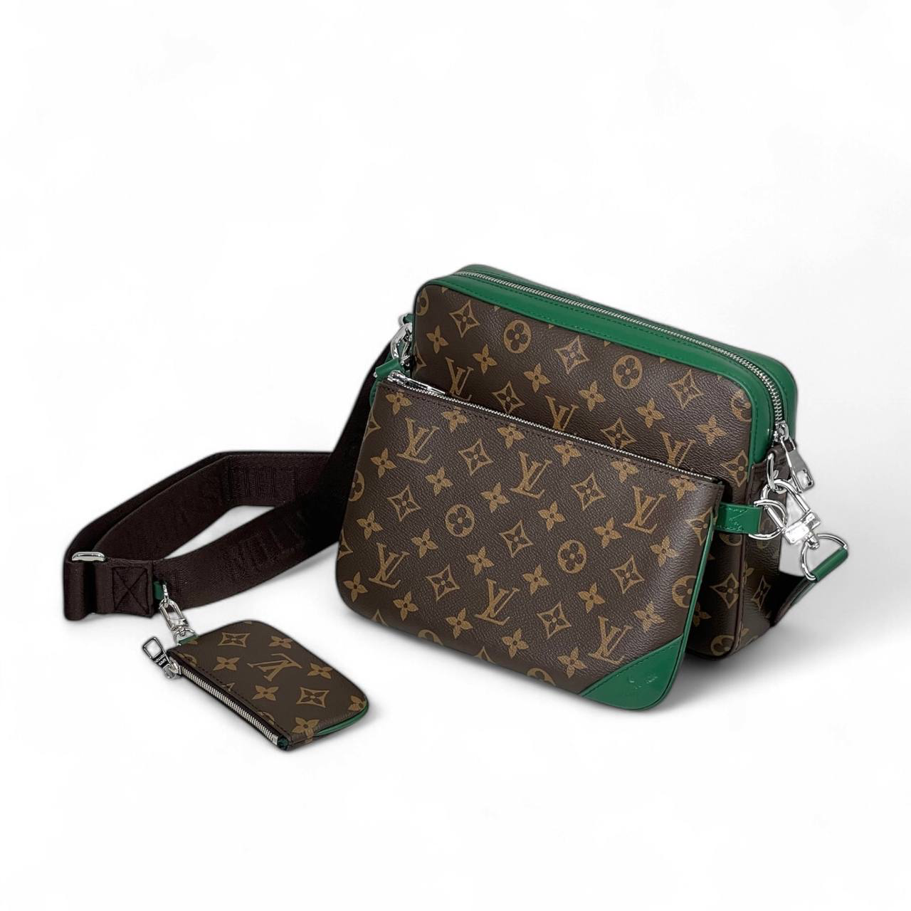 LV мессенджер 3 в 1 коричневая монограмма с зеленой кожаной вставкой