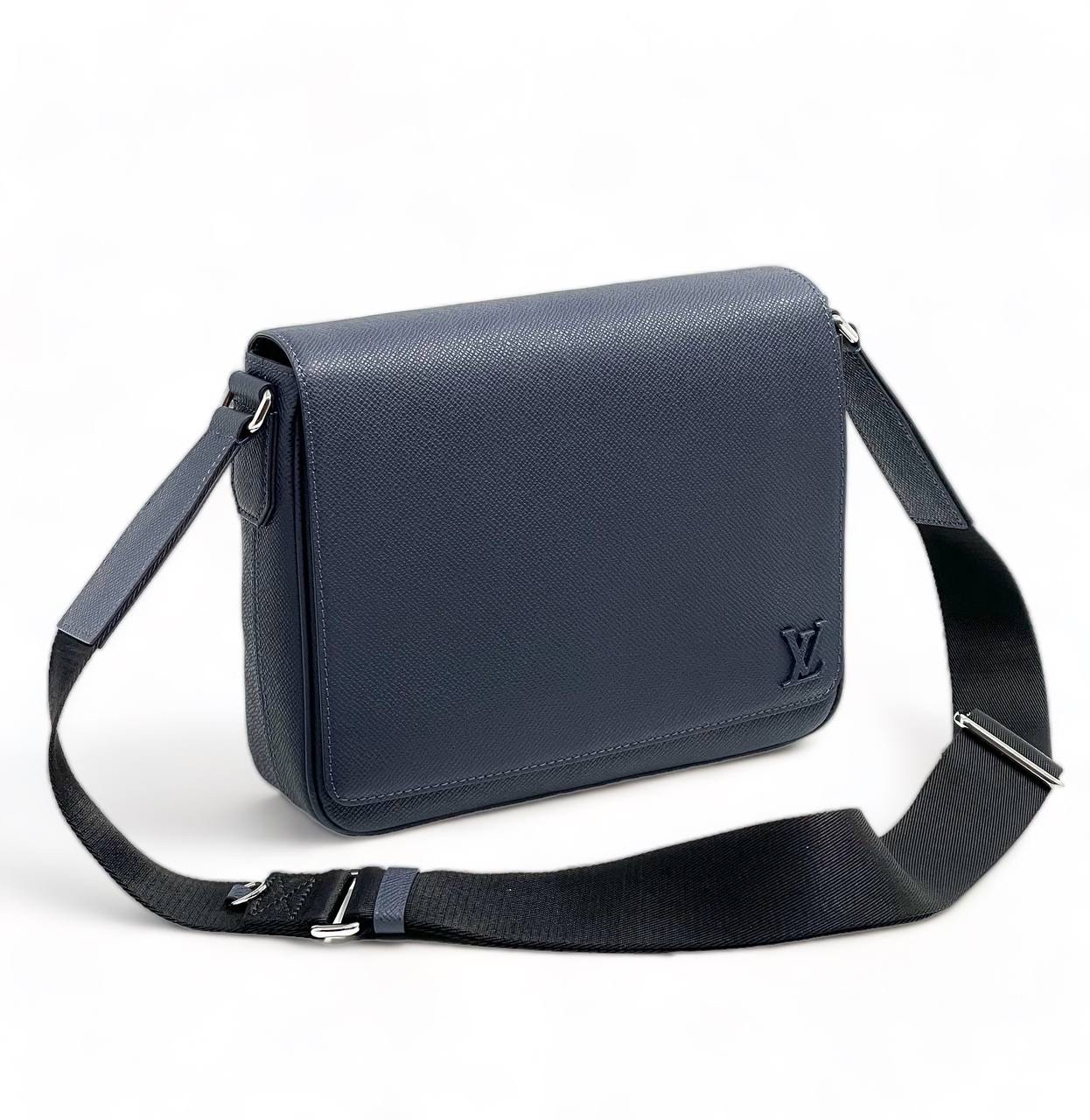 LV мессенджер District РМ синяя кожа тайга маленький с металическим с логотипом в цвет