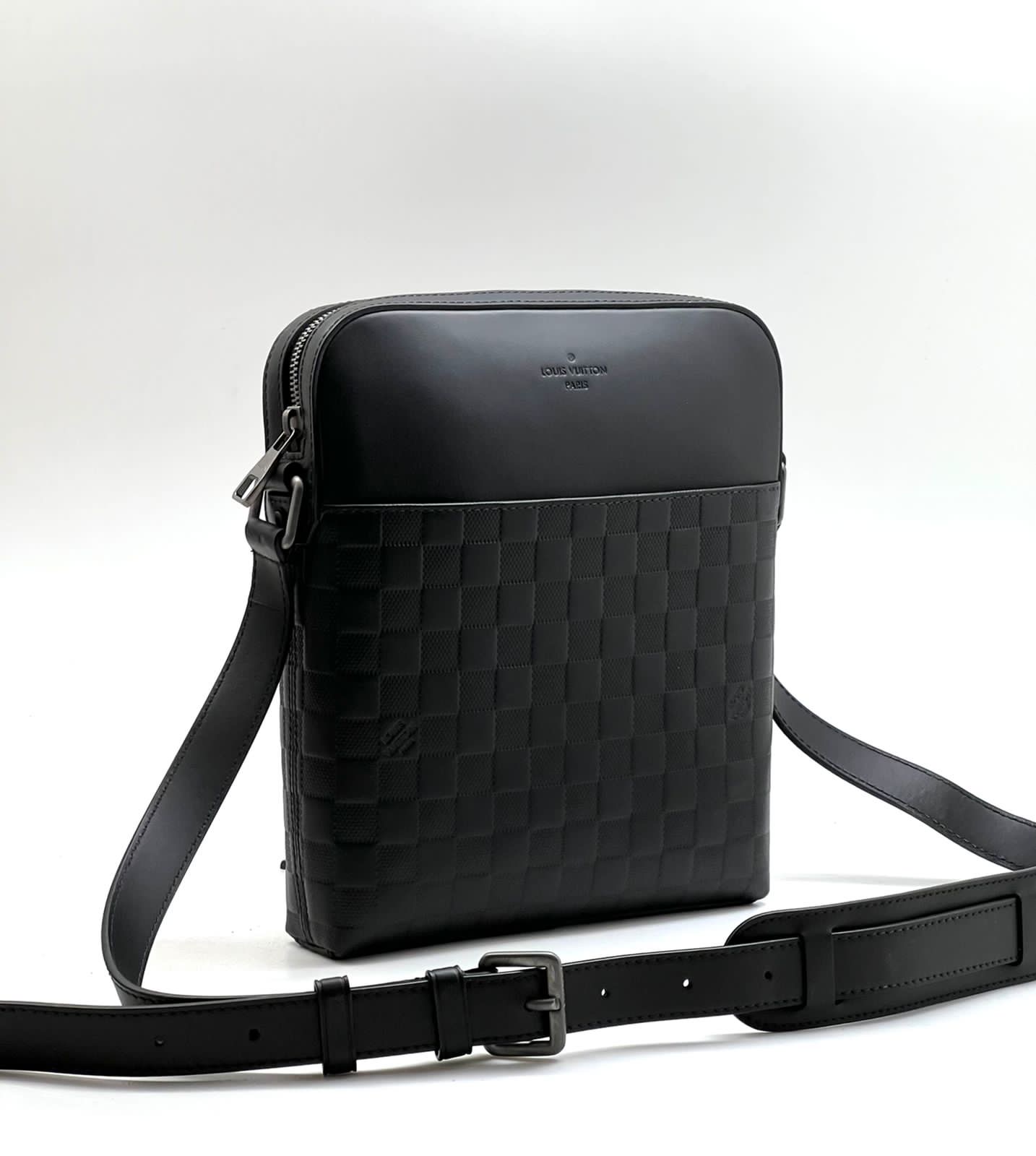 LV Мессенджер черный кожа тисненая шашка с лого на клапане