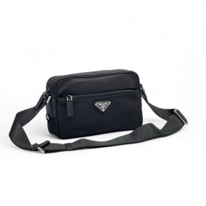 PRADA Мессенджер прямоугольный горизонтальный нейлон черный карман с переди на молнии треугольный логотип