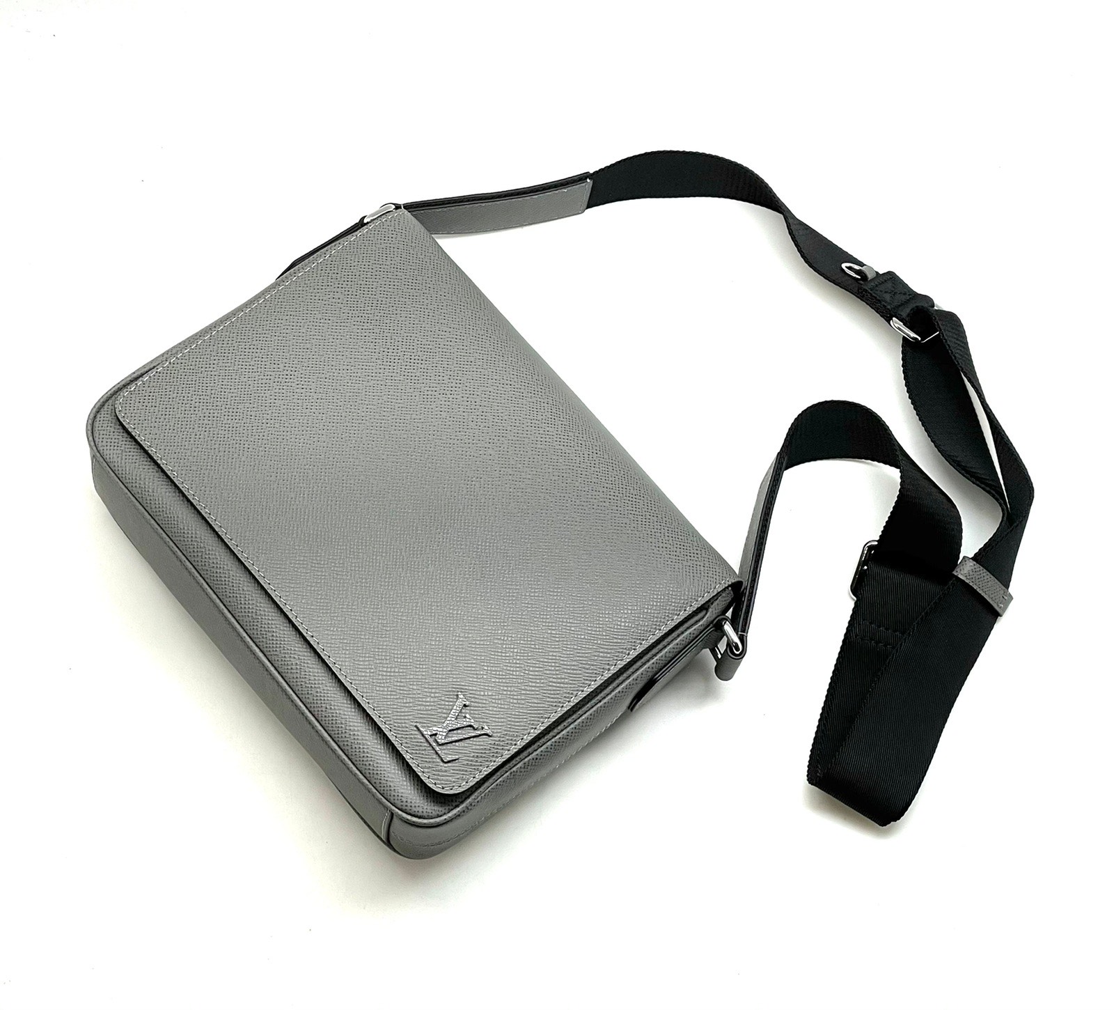 LV Мессенджер серый из кожи тайга металлический лого в цвет