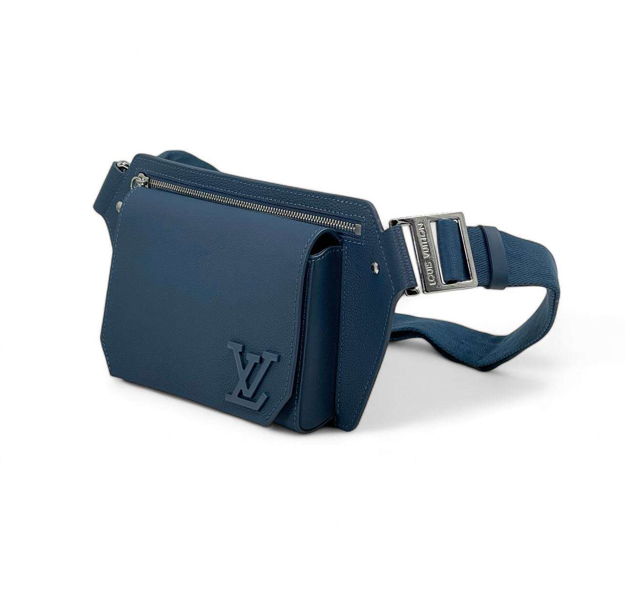 LV поясная сумка AEROGRAM синяя с большим синим матовым логотипом LV кожа того
