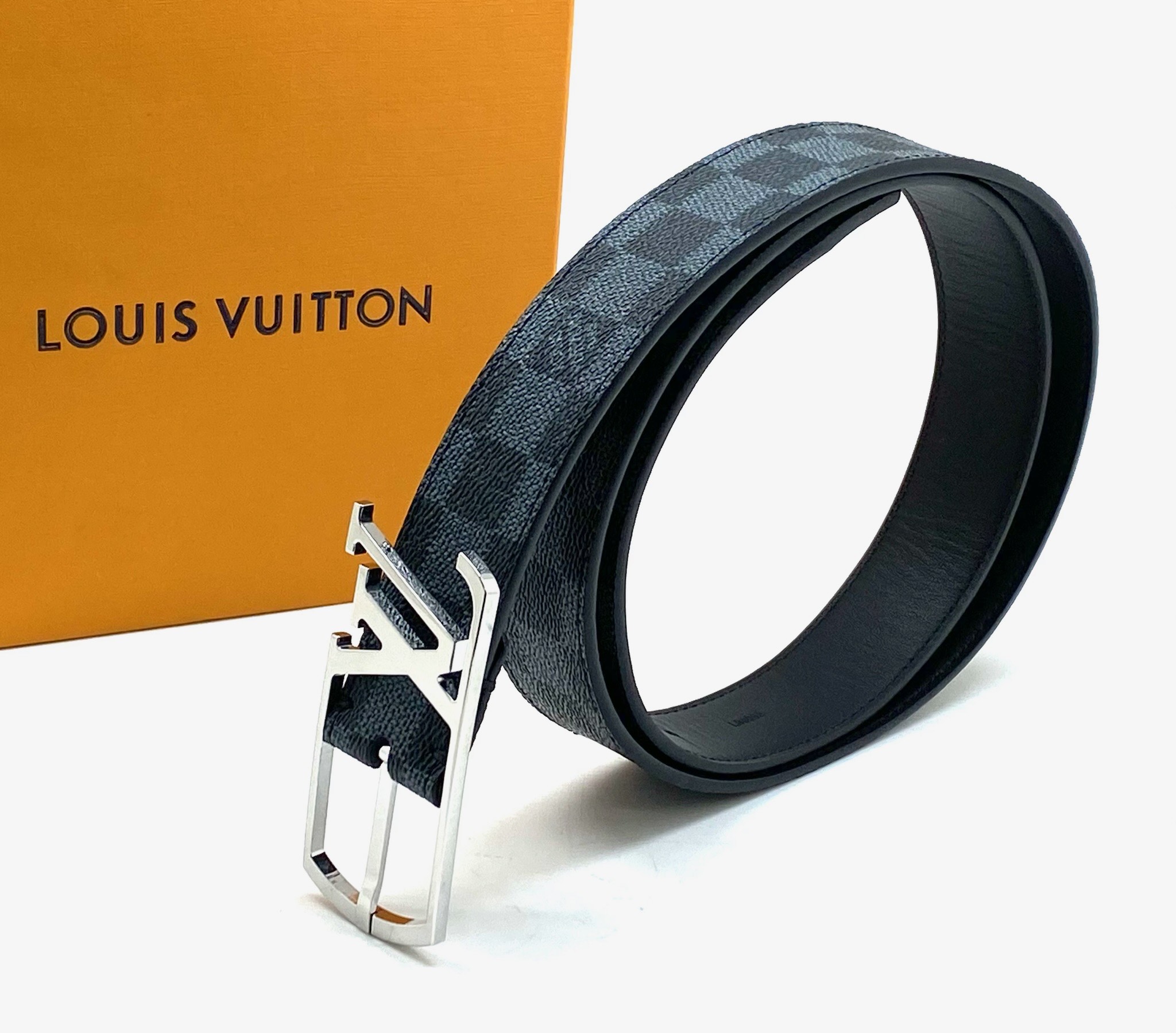 LV ремень брючный серая шашка пряжка удлиненная классика серебро с логотипом LV