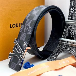 LV ремень серая монограмма пряжка LV черная матовая серебряным кантом