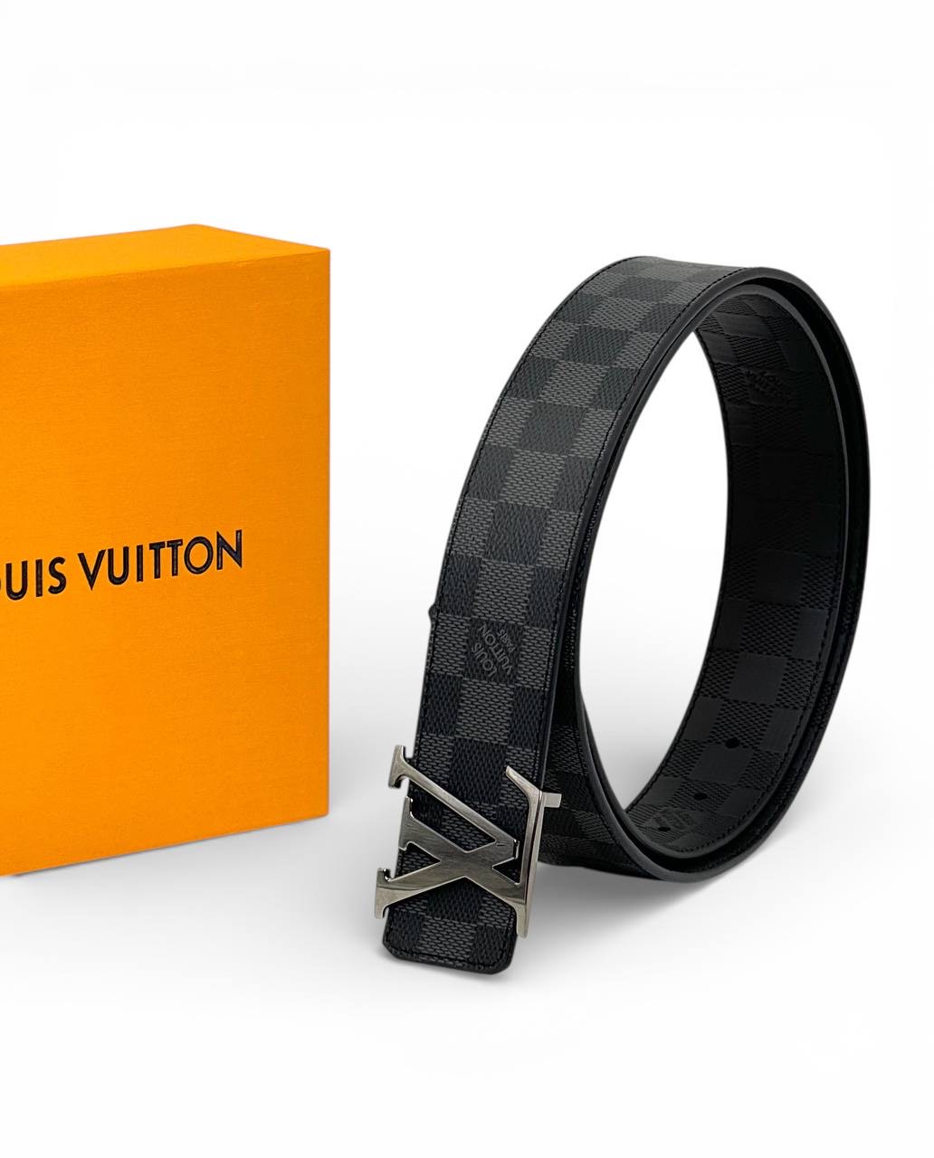 LV ремень двухсторонний серая шашка и черная кожа тисненная в шашку сьемная пряжка