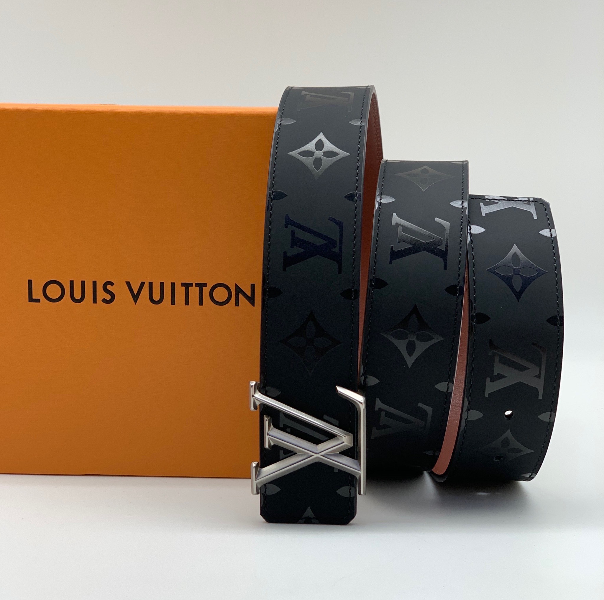 LV ремень гладкая кожа монограмма черный пряжка LV острая серебро