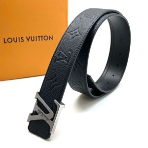 LV ремень черная кожа Togo с тиснением монограммы пряжка серебро с надписью