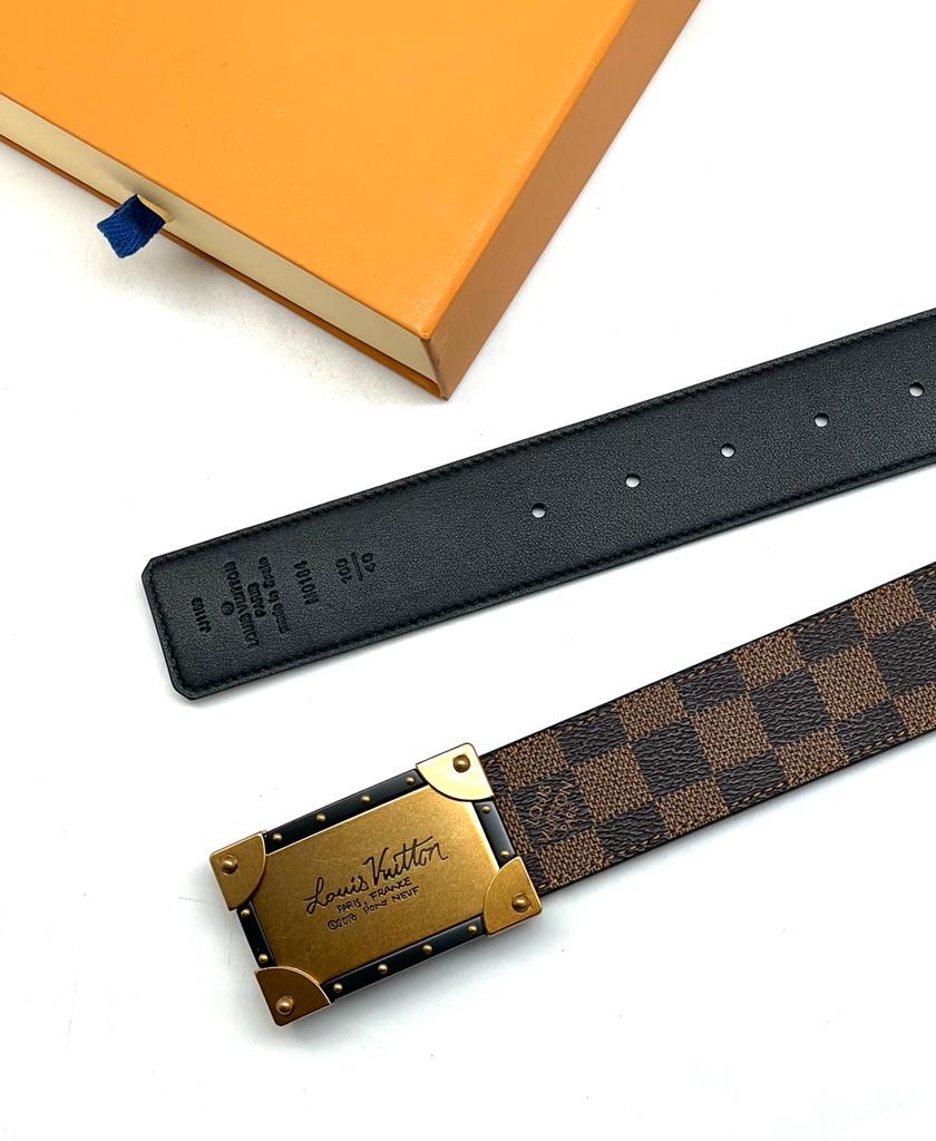 LV ремень коричневая шашка закрытая пряжка надпись курсив
