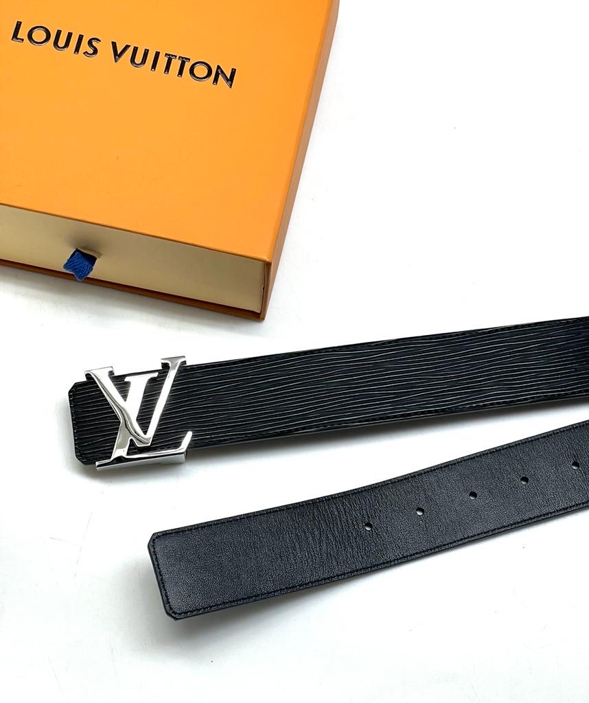 LV ремень брючный кожа шашка черный пряжка серебро
