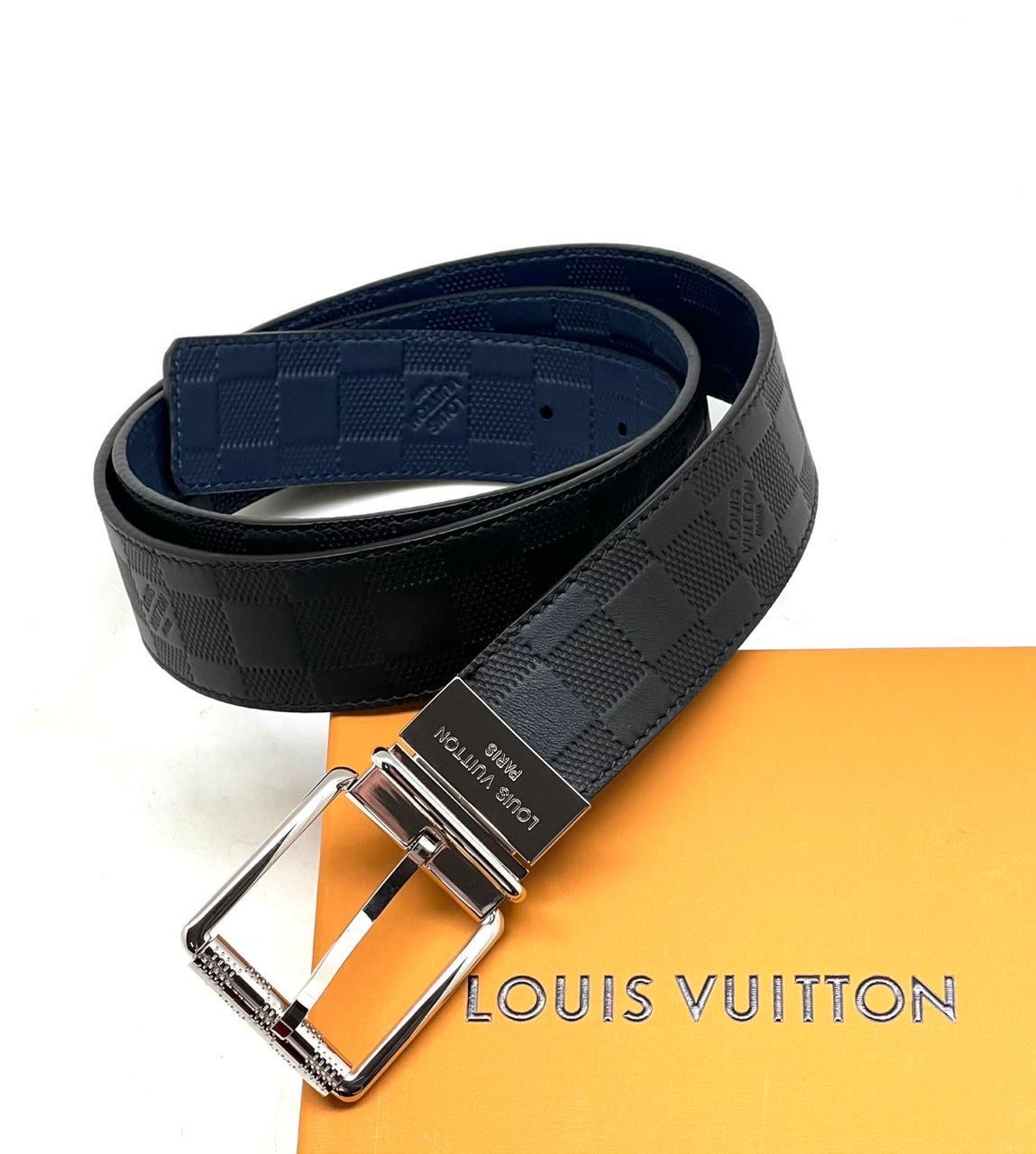 LV ремень кожа шашка черно-синий пряжка классика серебро