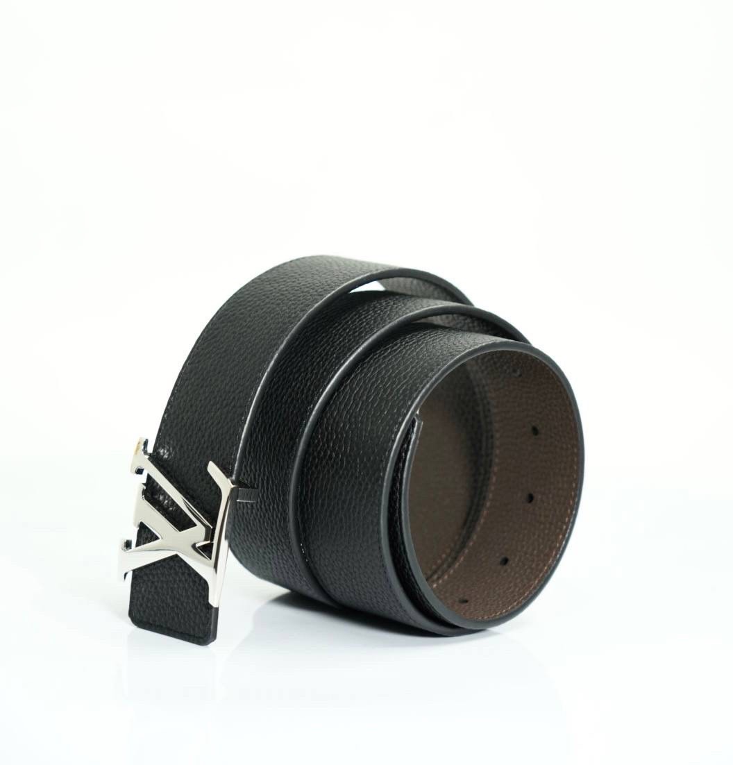 LV ремень кожа того черно-коричневый двухсторонний пряжка LV серебро глянец