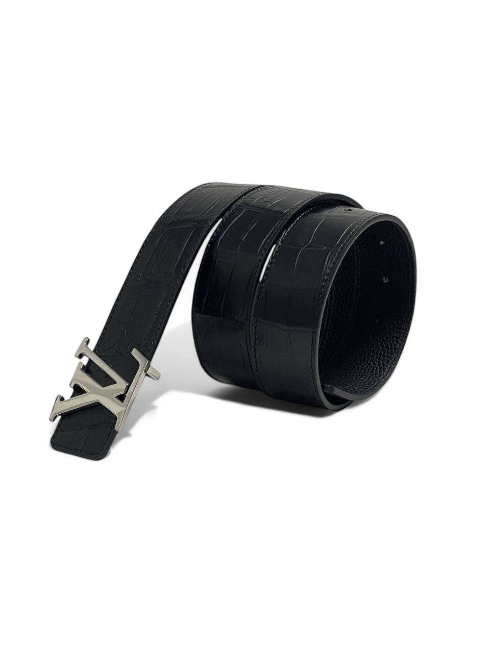 LV ремень крокодил джинсовый съемная пряжка темно-коричневый