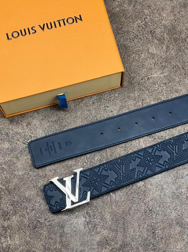 LV ремень синий кожа с тиснением нового узора монограмм пряжка LV серебро