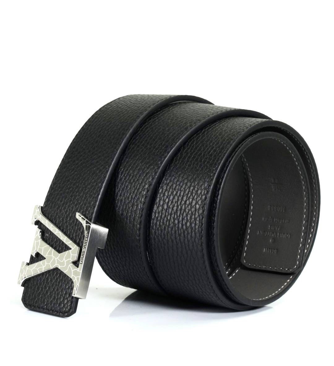 LV ремень двухсторонний черная кожа в икре пряжка LV черная кожа в икре на черном металле