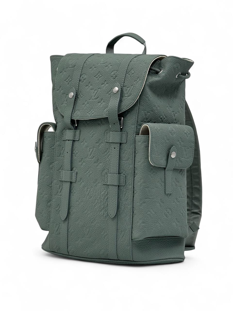 LV рюкзак Christopher зеленая кожа того с тиснением монограммы маленький