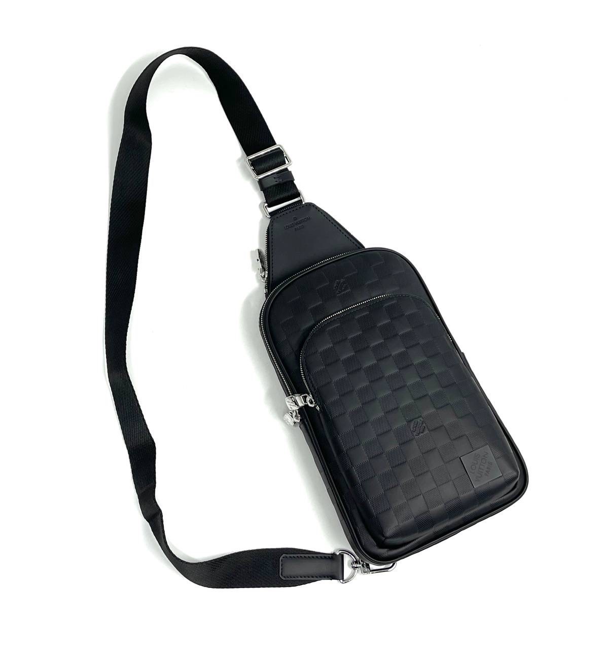 LV Слинг черный кожа шашка большой карман спереди