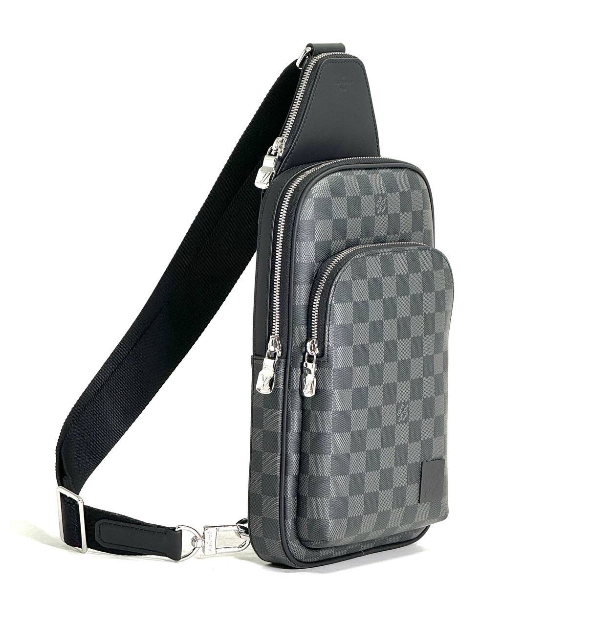 LV слинг канва серая шашка с большим передним карманом и кожаной нашивкой